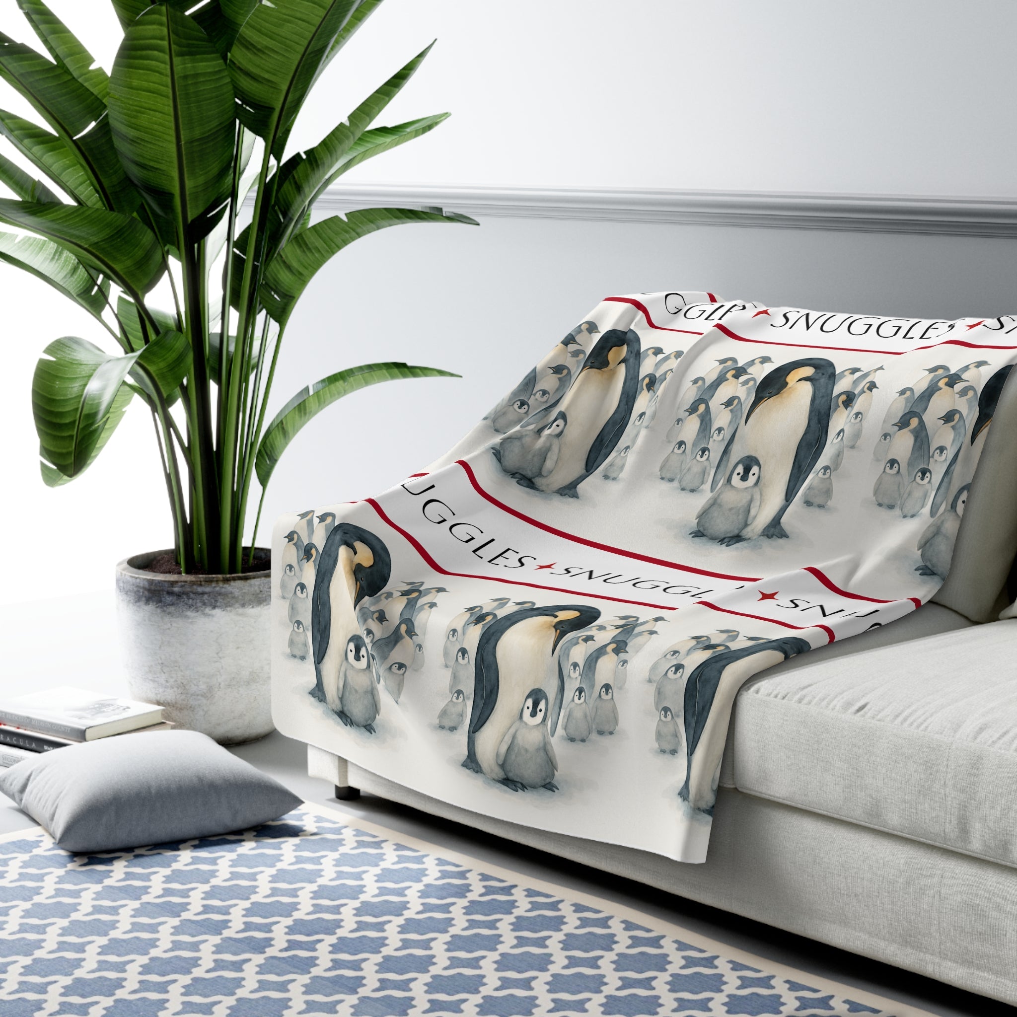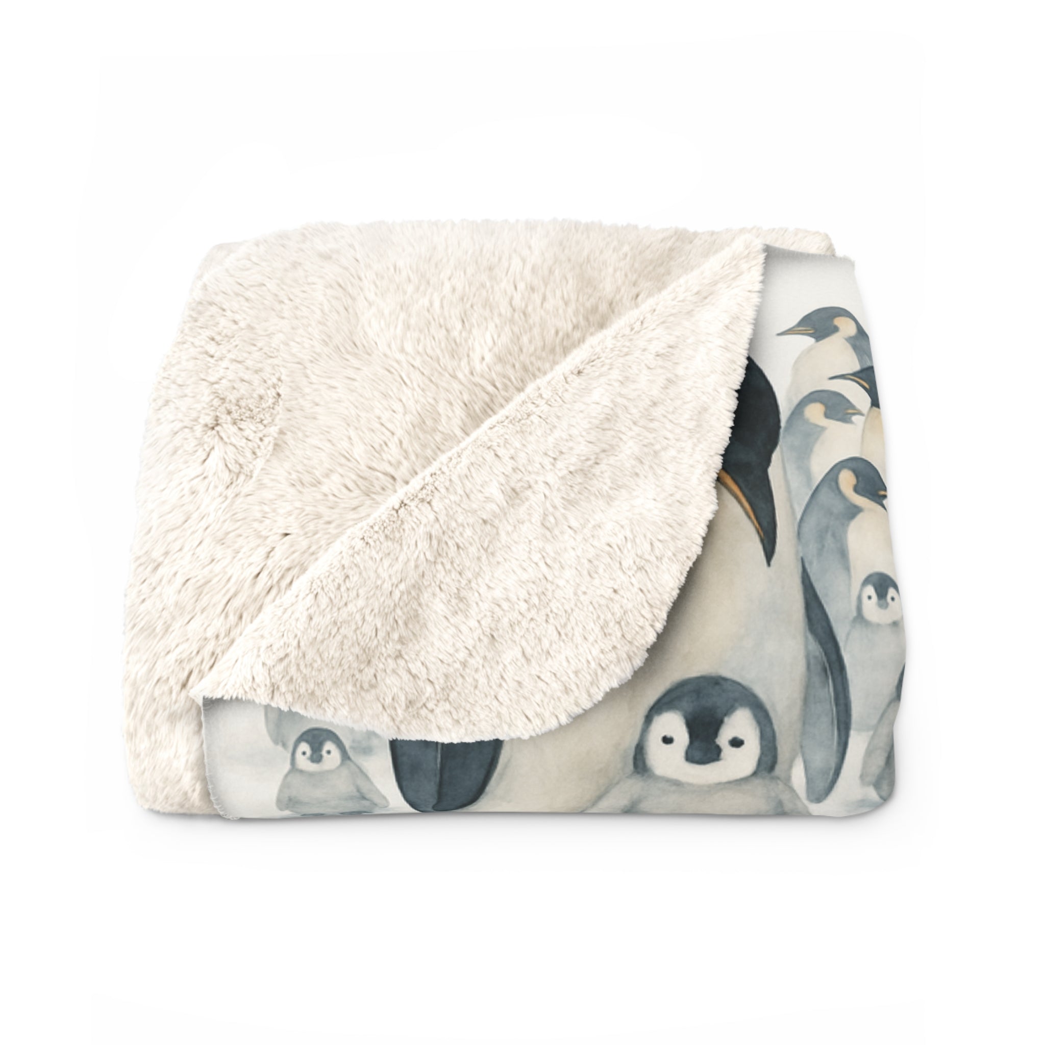 Sherpa Fleece Snuggles Blanket with Mother and Chick Penguins