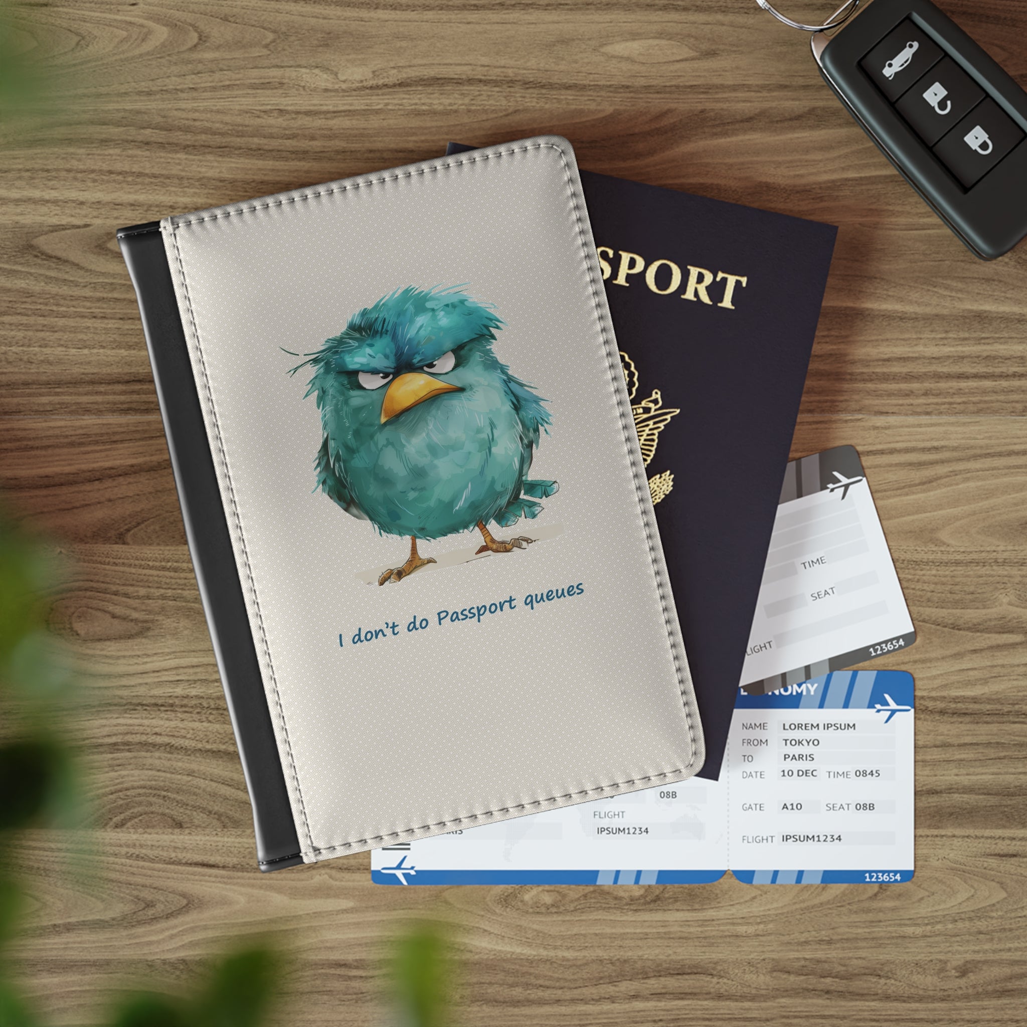 Passport Cover - Whimsical Turquoise Grumpy Bird Design