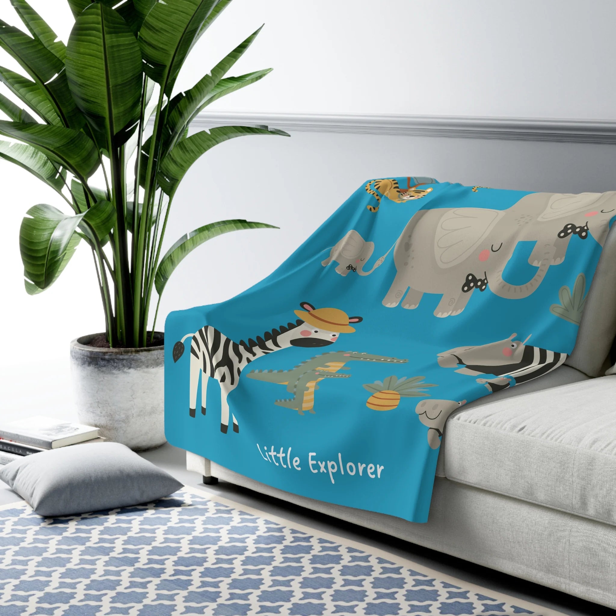 Sherpa Fleece Blanket - Cute Safari Animals Little Explorer Theme