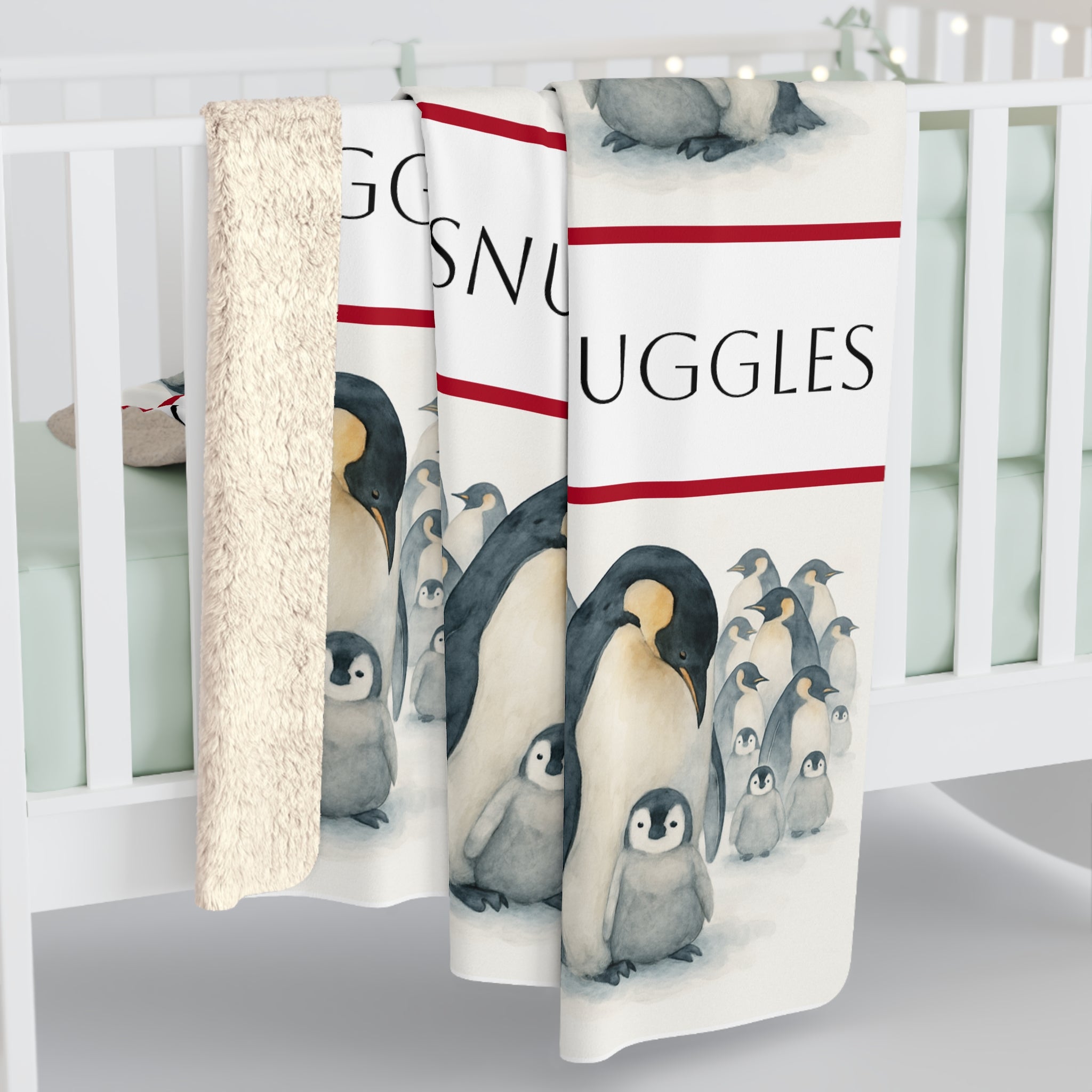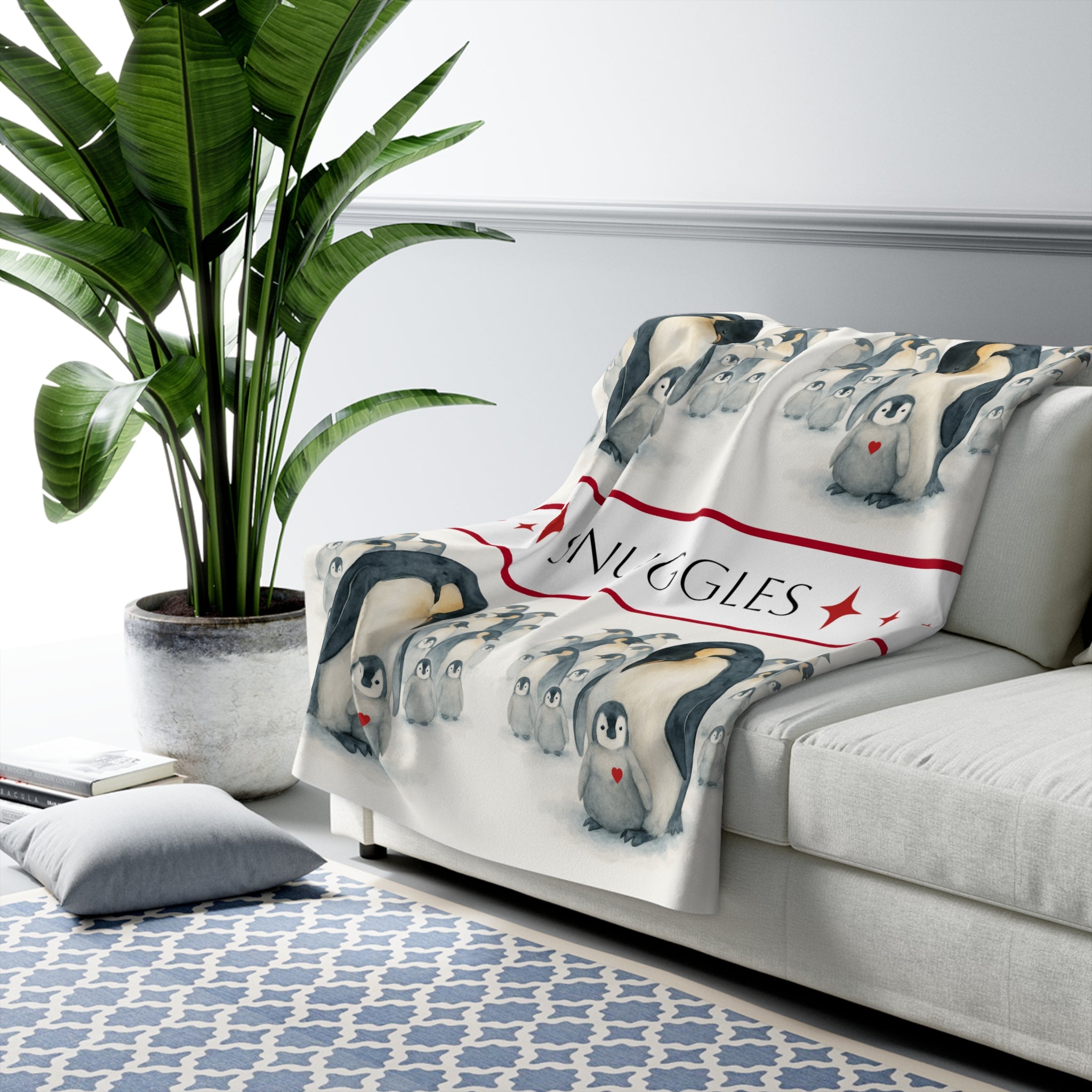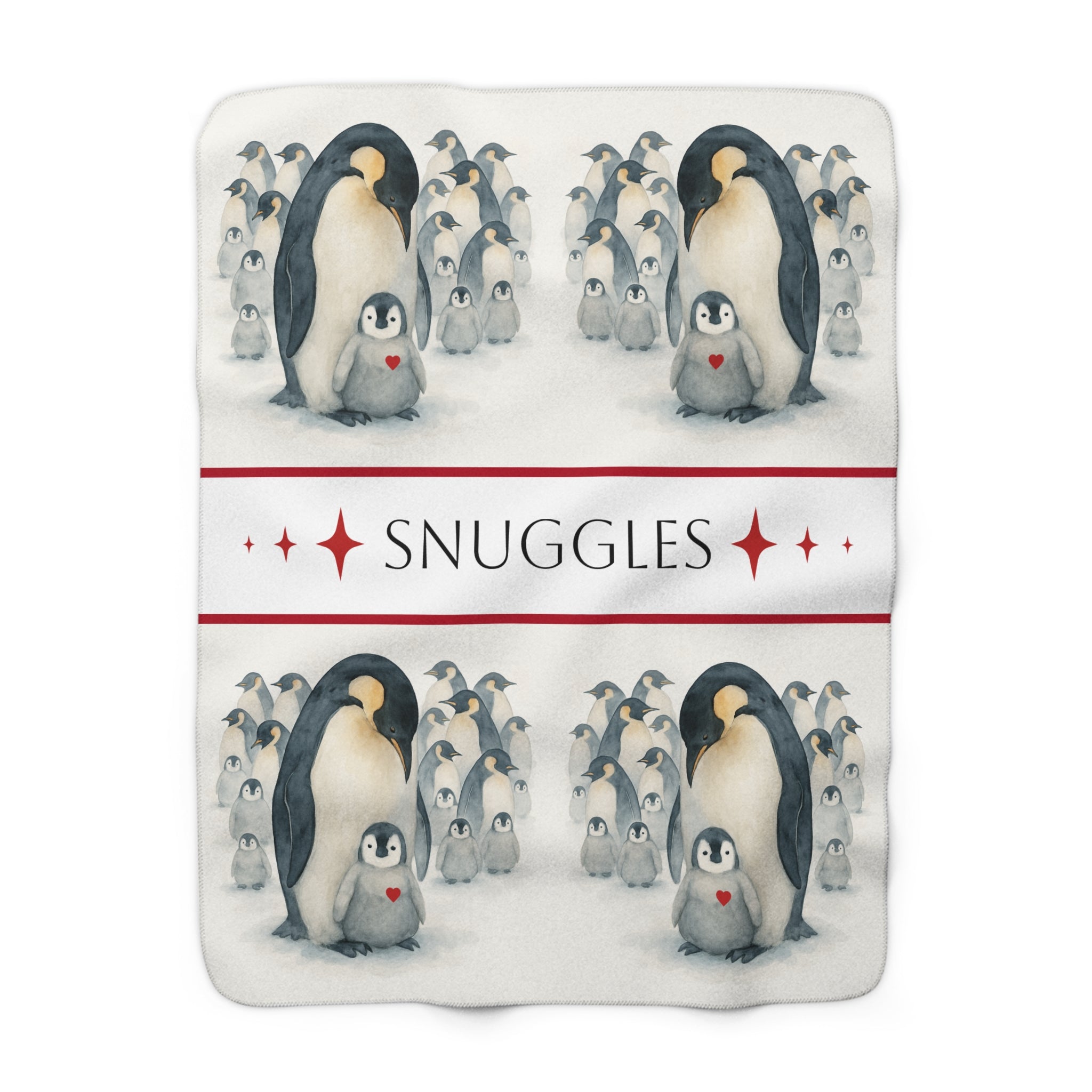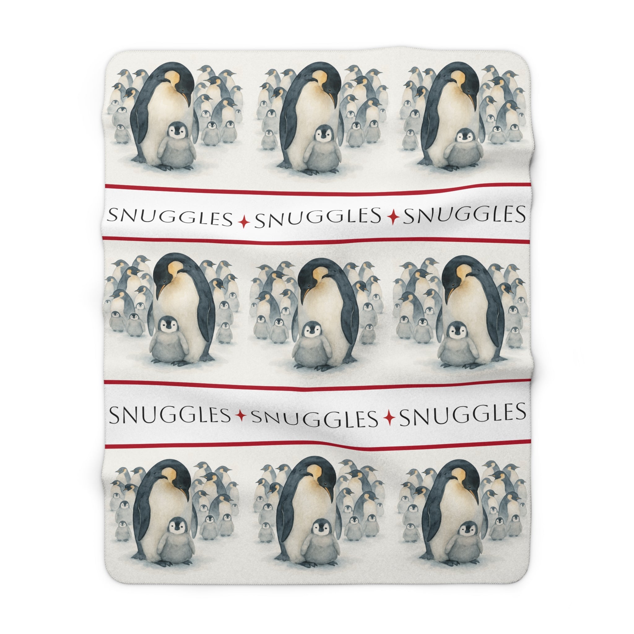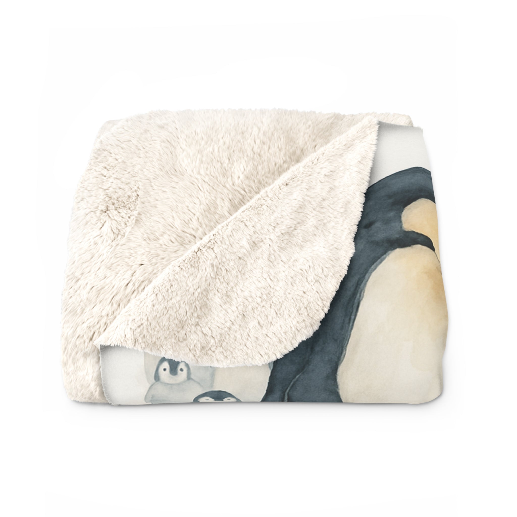 Sherpa Fleece Snuggles Blanket with Mother and Chick Penguins
