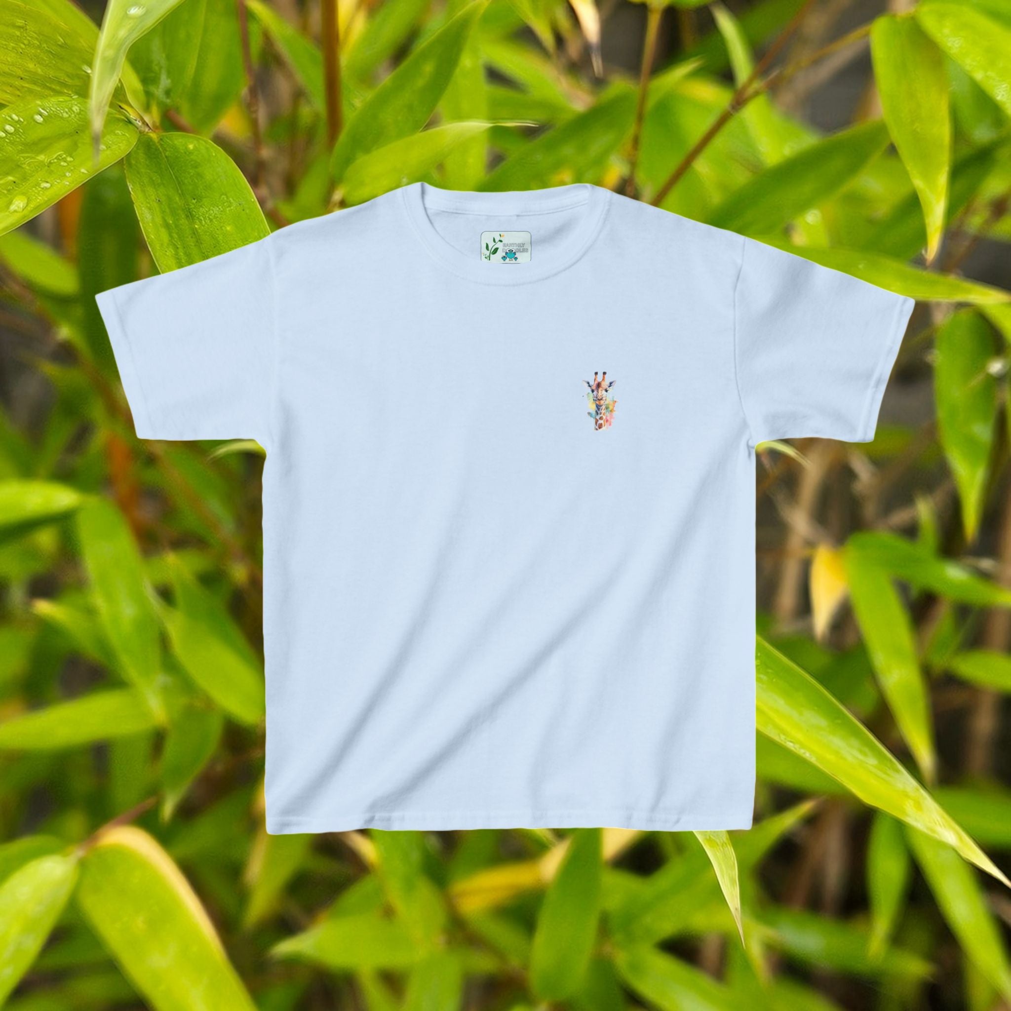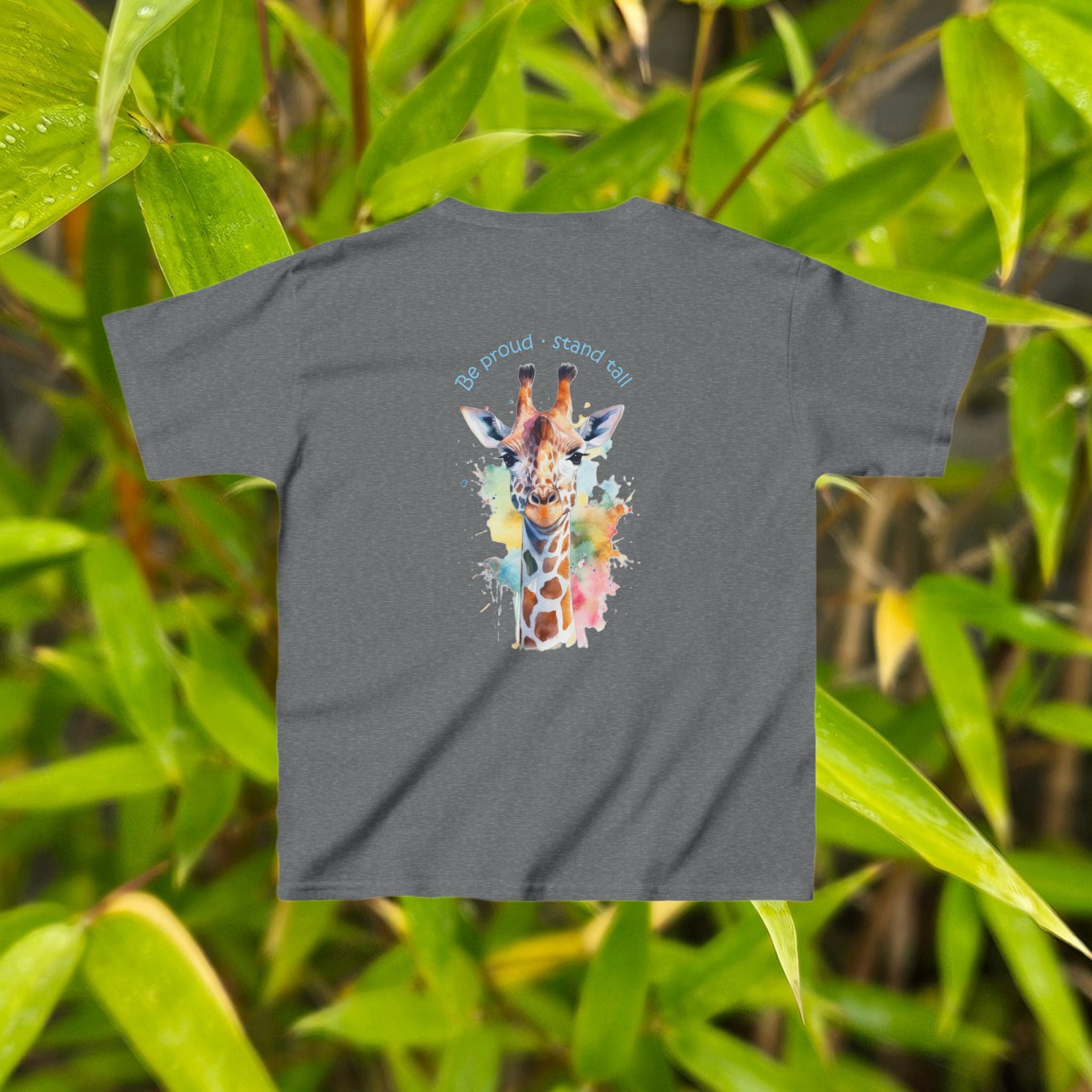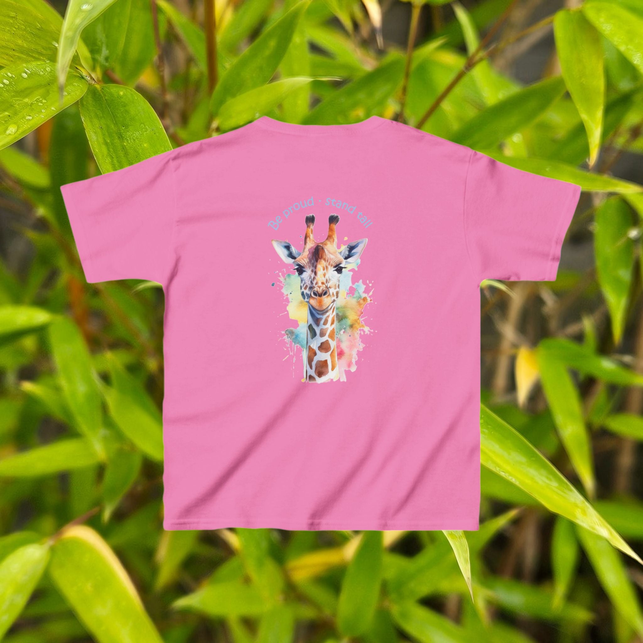 A colorful giraffe design with a motivational message, perfect for inspiring little ones to be proud of who they are. This tee is made with soft, midweight cotton, making it a comfortable choice for any season. The classic fit and crew neckline offer timeless style that is ideal for daily wear. Kids will love the fun design (front and back) while parents will appreciate the ethical and sustainable production.